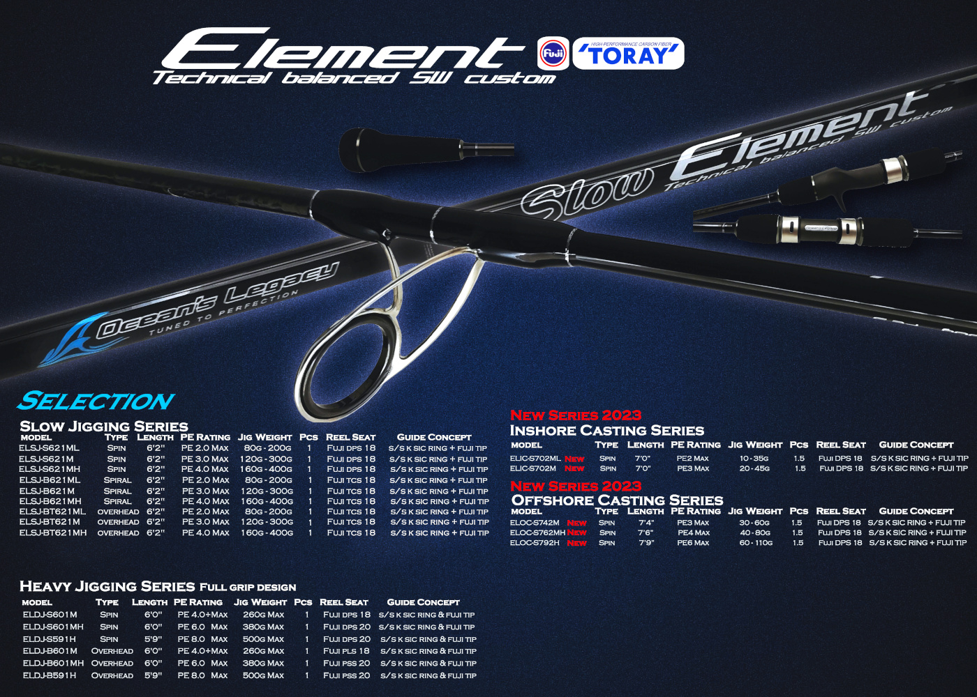 The Ocean’s Legacy Slow Element Range is an extremely versatile range of rods.
